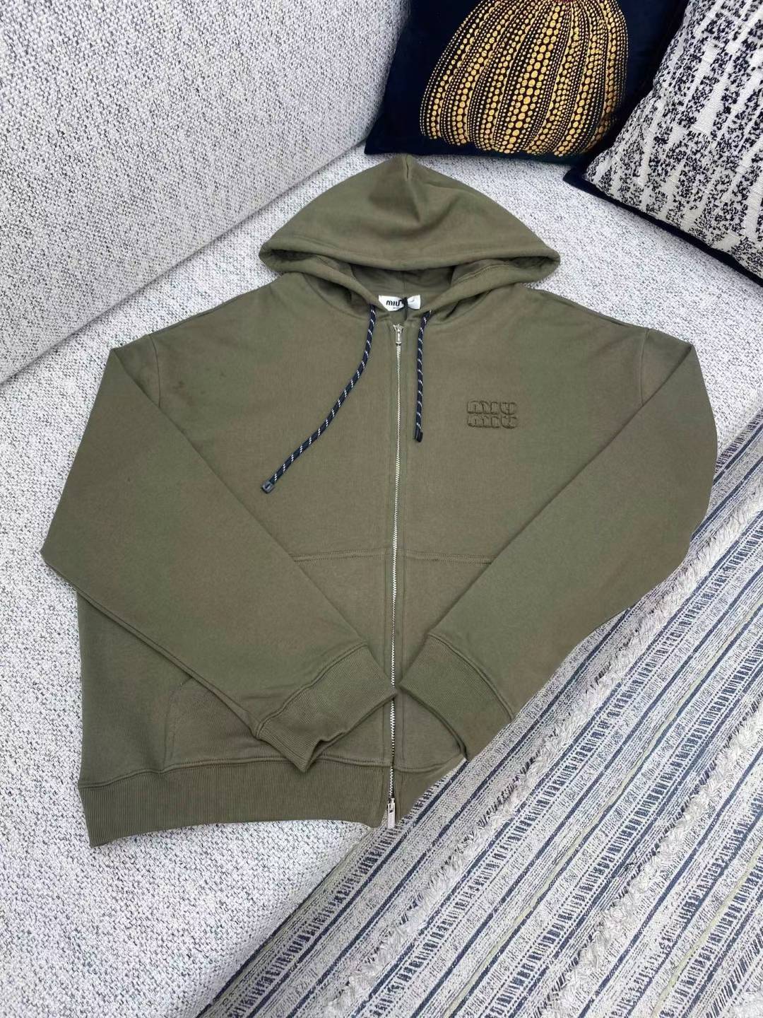 미우미우 2026 지퍼넥 로고 와펜 카라 그레이컬러 배색 니트